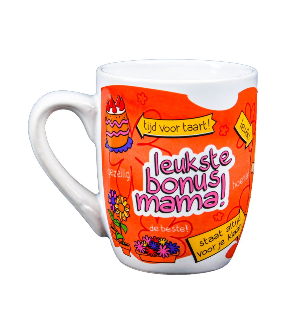 Deze vrolijke keramische mok is perfect voor het waarderen van je geweldige bonuspapa! Met zijn kleurrijke cartoon-stijl design, grappige tekeningen en de tekst 'Bonuspapa' is deze mok een echte eyecatcher die je liefde voor bonuspapa extra speciaal maakt.