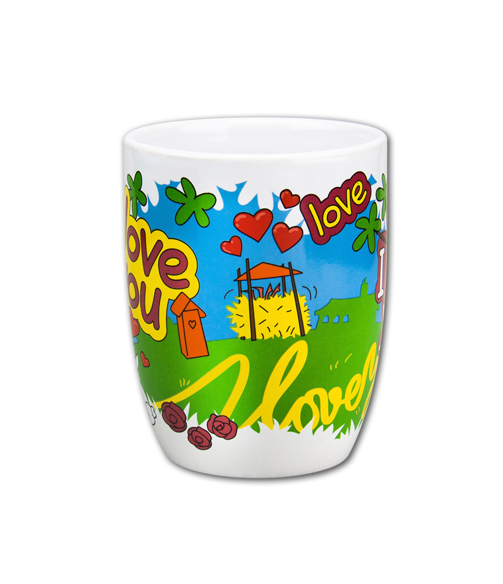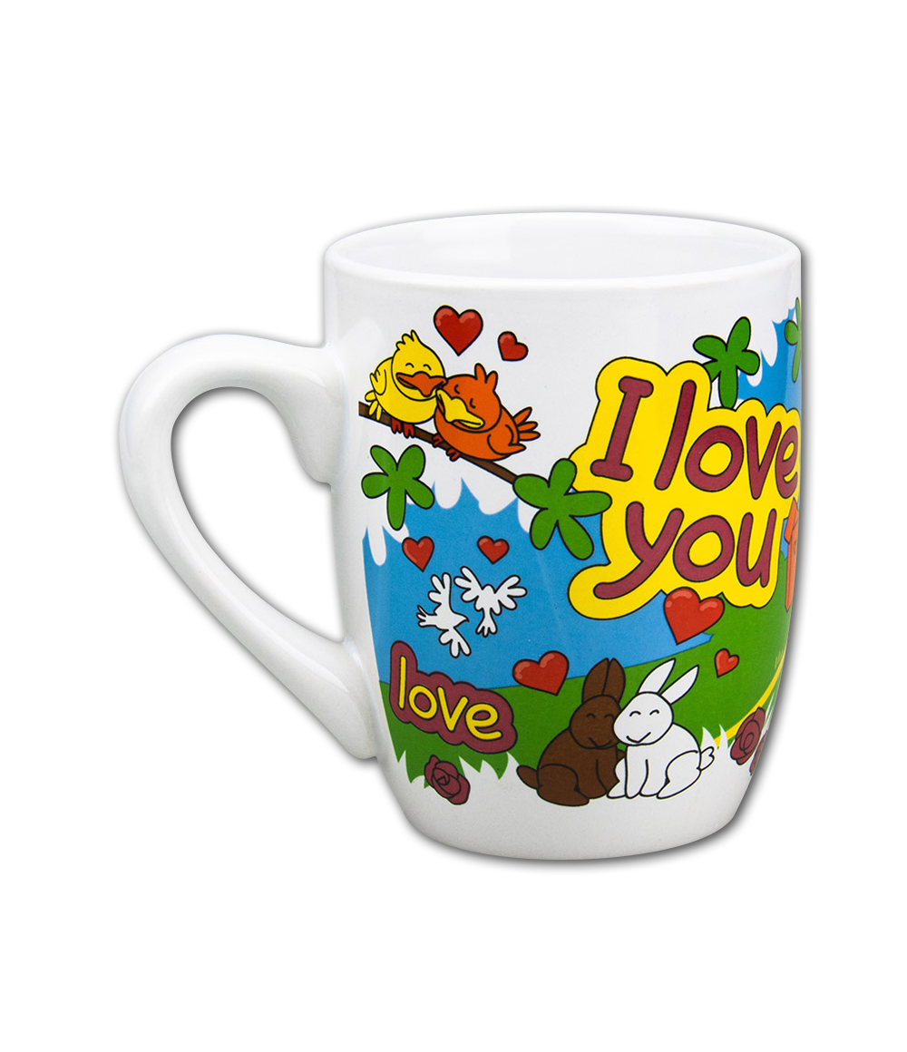 Deze vrolijke keramische mok is perfect om je liefde te tonen! Met zijn kleurrijke cartoon-stijl design, grappige tekeningen en de tekst 'I Love You' is deze mok een echte eyecatcher die elke dag extra speciaal maakt.
