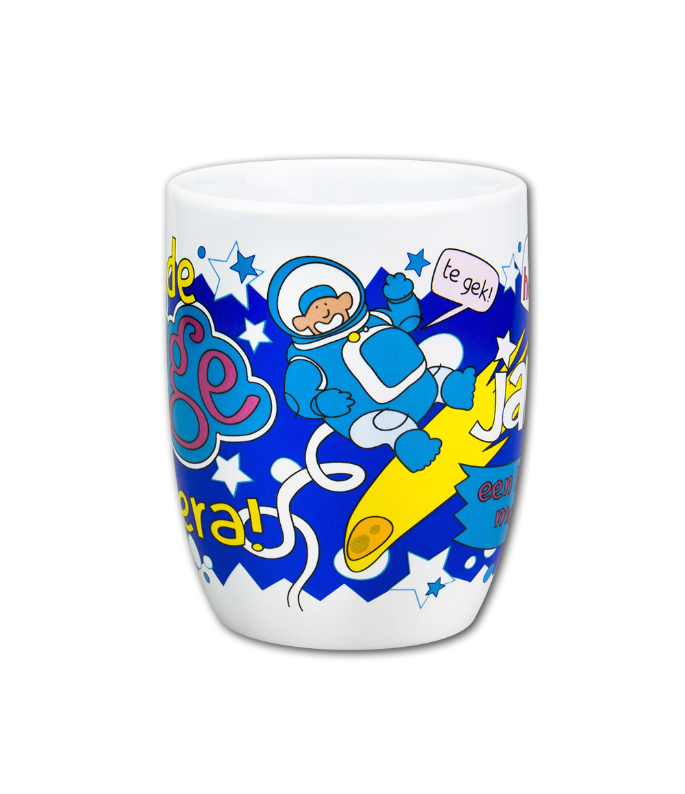 Deze mok combineert functionaliteit met plezier - gebruik hem voor je koffie, thee of vul hem met 200 gram heerlijke snoepjes als origineel verjaardagscadeau. De cartoon-stijl met sterren, explosies en vrolijke kleuren maakt elke slok tot een feestelijk moment!