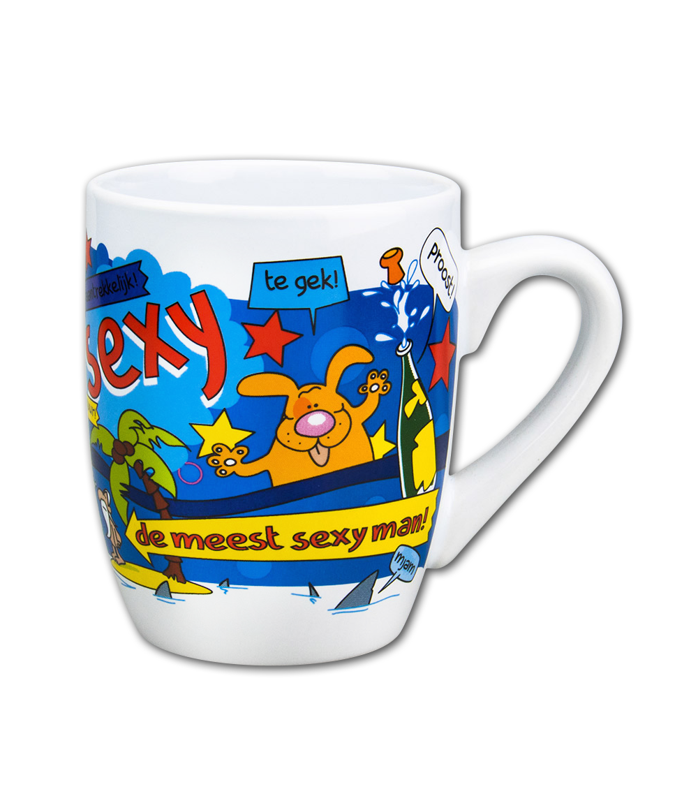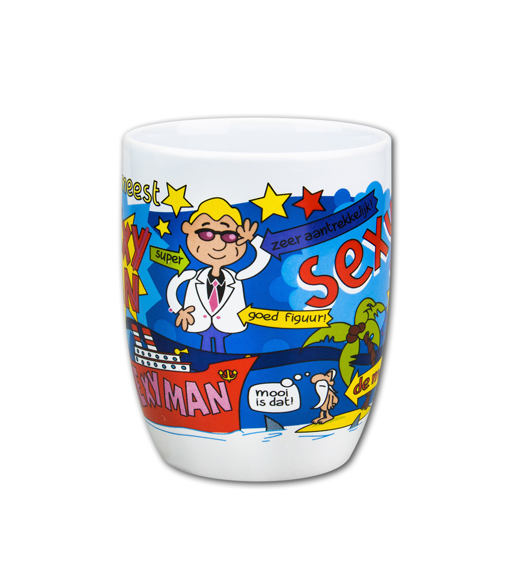 Deze vrolijke keramische mok is perfect voor mannen die weten dat ze een sexy man zijn! Met zijn kleurrijke cartoon-stijl design, grappige tekeningen en de tekst 'Sexy Man' is deze mok een echte eyecatcher die elke dag extra speciaal maakt.