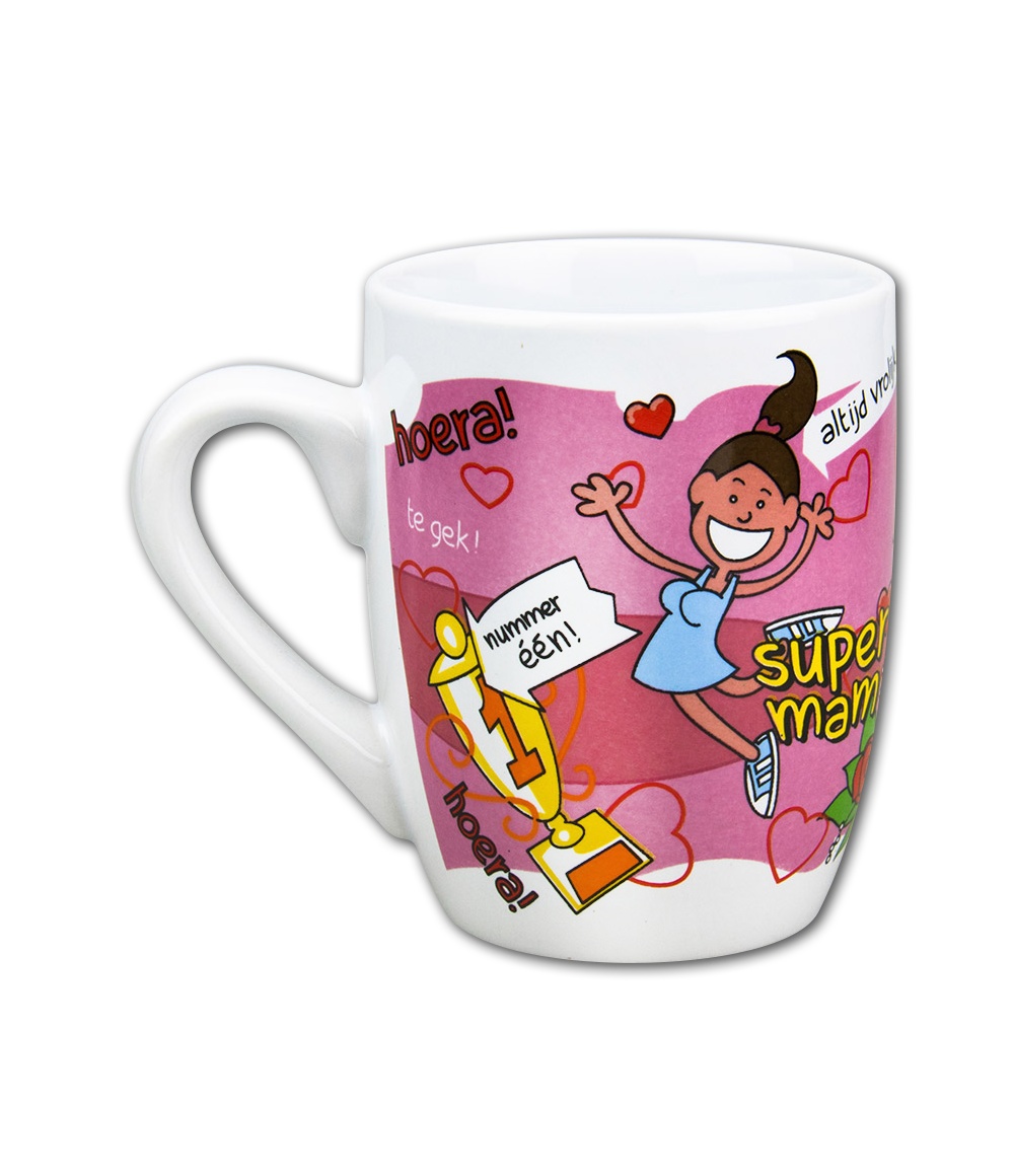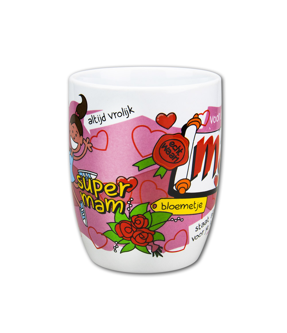 Deze mok combineert functionaliteit met liefde - gebruik hem voor je koffie, thee of vul hem met 200 gram heerlijke snoepjes als origineel cadeau voor mama. De cartoon-stijl met sterren, explosies en vrolijke kleuren maakt elke slok tot een vrolijk moment!