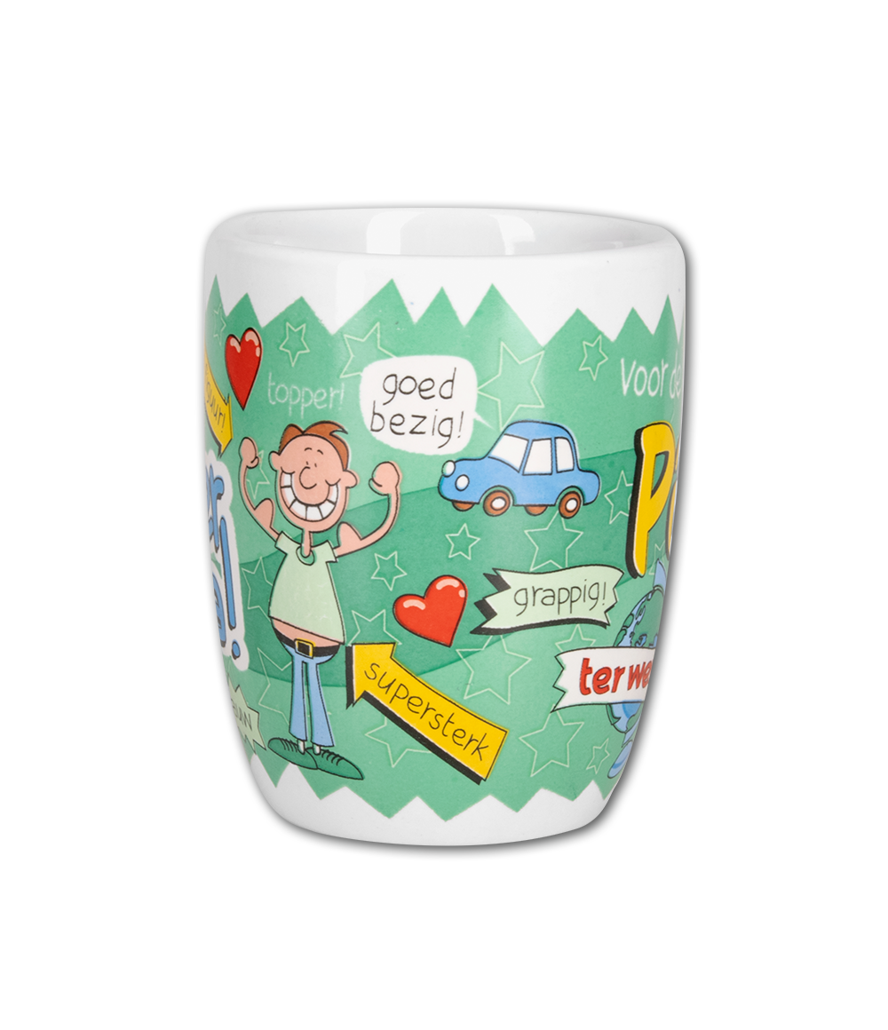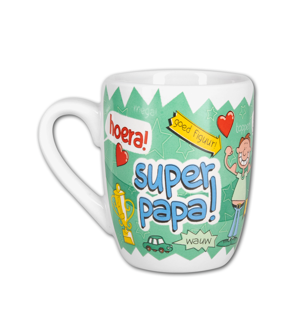 Deze mok combineert functionaliteit met liefde - gebruik hem voor je koffie, thee of vul hem met 200 gram heerlijke snoepjes als origineel cadeau voor papa. De cartoon-stijl met sterren, explosies en vrolijke kleuren maakt elke slok tot een vrolijk moment!