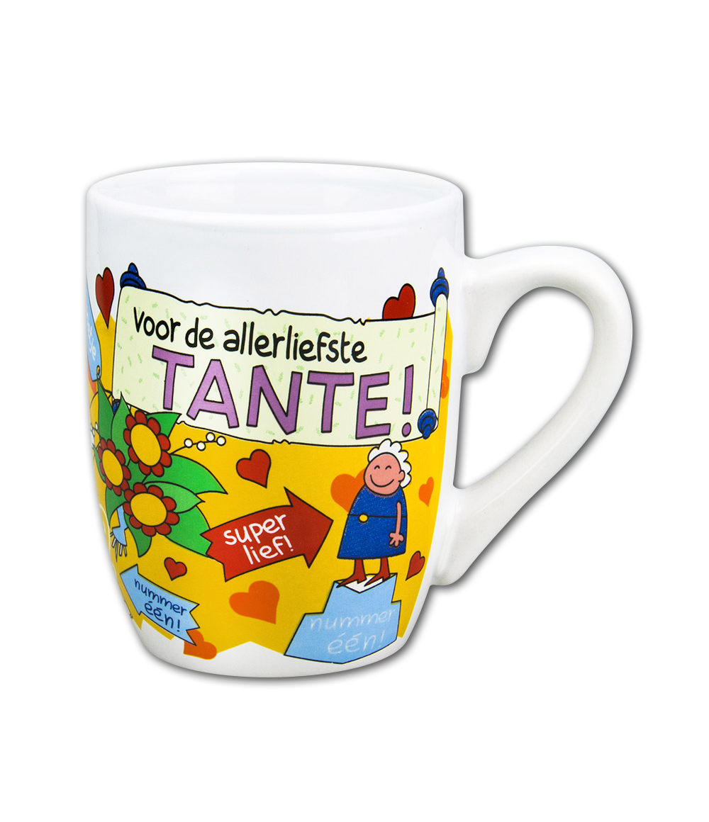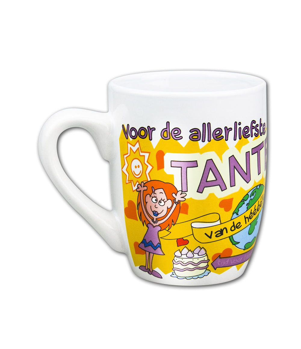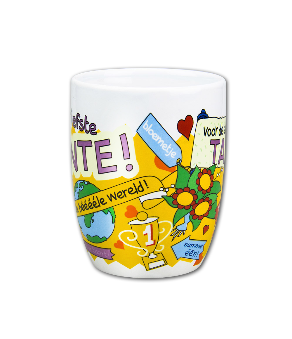 Deze vrolijke keramische mok is perfect voor het waarderen van je geweldige tante! Met zijn kleurrijke cartoon-stijl design, grappige tekeningen en de tekst 'Tante' is deze mok een echte eyecatcher die je liefde voor tante extra speciaal maakt.